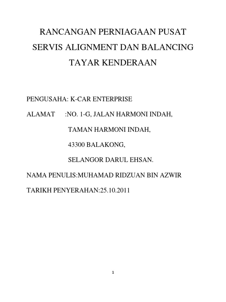 Rancangan Perniagaan Pusat Servis Alignment Dan Balancing Tayar Kenderaan Pdf